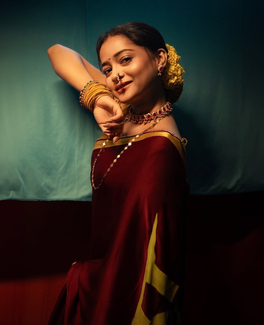फ्लोरल प्रिंट ऑर्गेंझा साडीत श्रुती मराठे