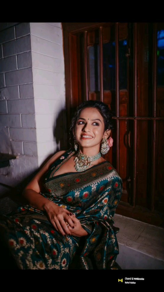 कार्यक्रमासाठी नेसली हिरव्या रंगाची बनारसी साडी