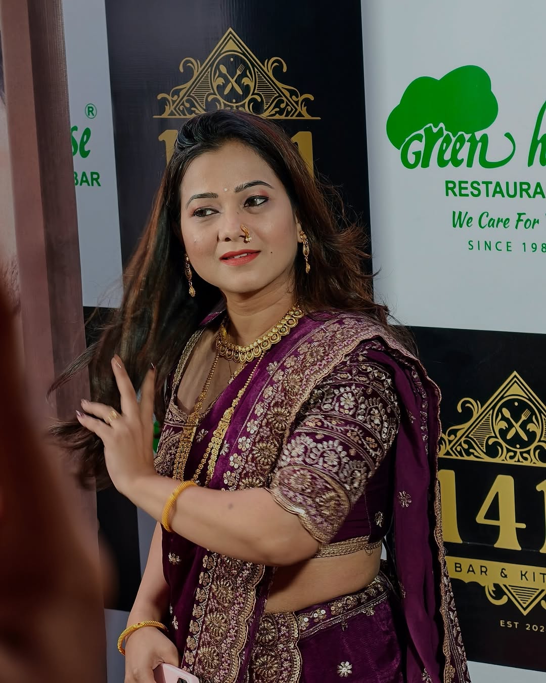 गुढीपाडव्यासाठी नेसली जांभळ्या रंगाची नऊवारी साडी