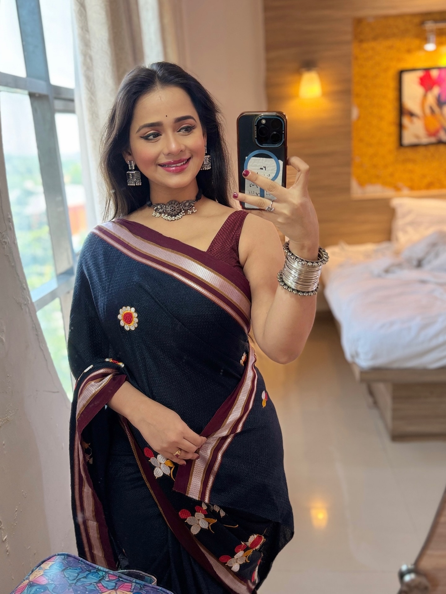 लाल वन पिस ड्रेसमध्ये स्टायलिश धनश्री काडगांवकर