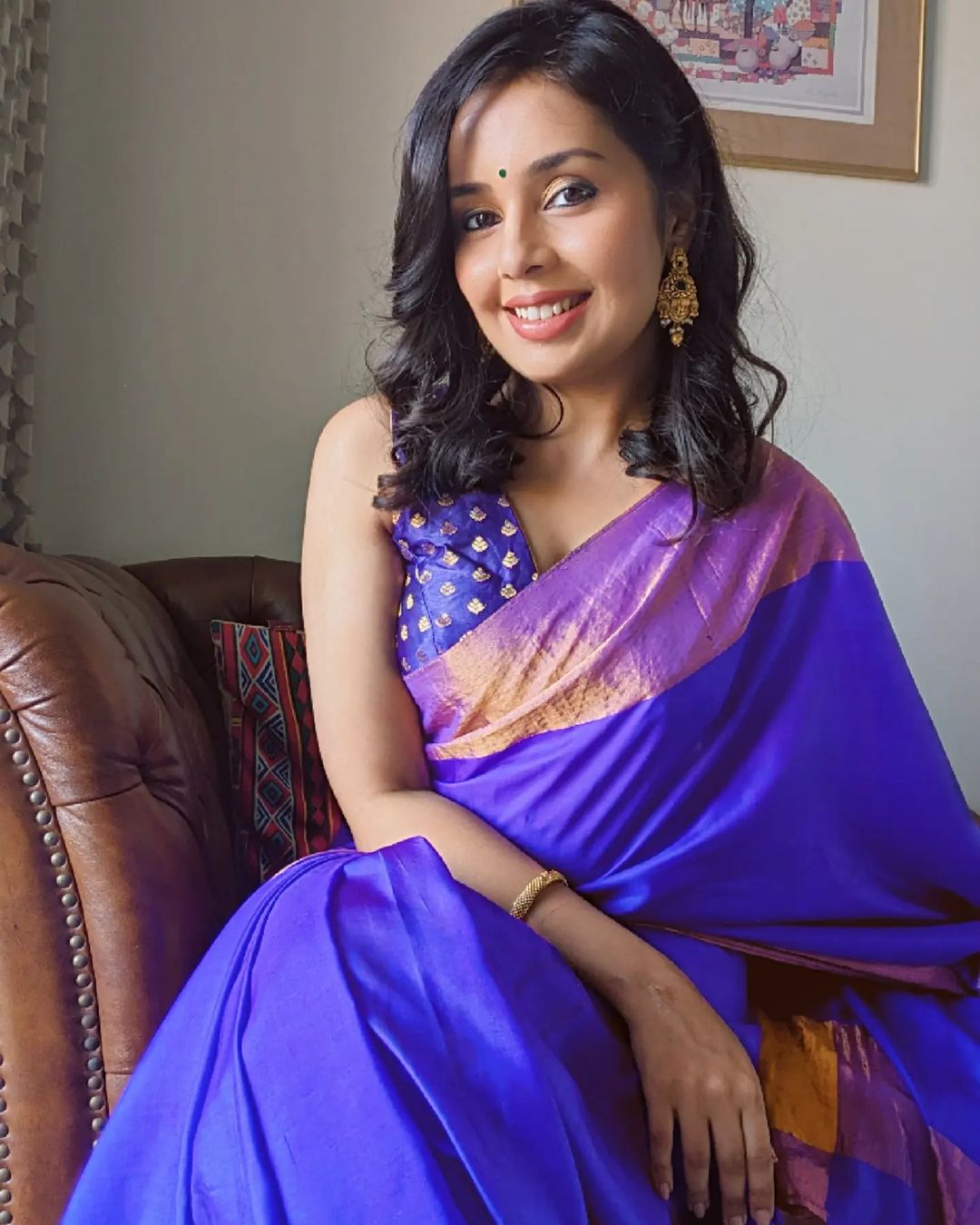 निळ्या रंगाच्या साडीत केले नवीन फोटोशूट